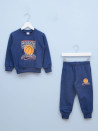 Komplet trenerka za dečake, sašivena od udobnog i mekanog pamučnog materijala. Model je klasičan, a boja plava sa aplikacijom košarkaške lopte. Predstavlja udoban komad odeće idealan za celodnevno nošenje u vrtiću.